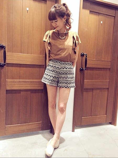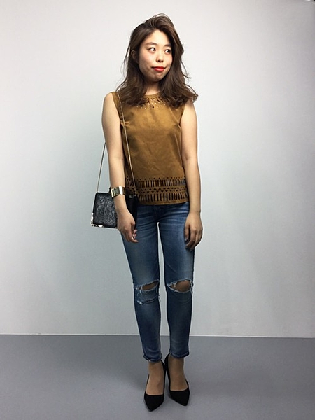 茶色スエード×トップス