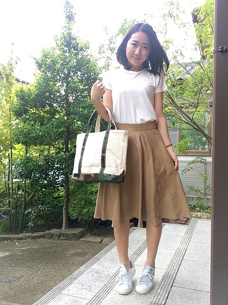 スエードスカートで秋っぽさをプラスして。