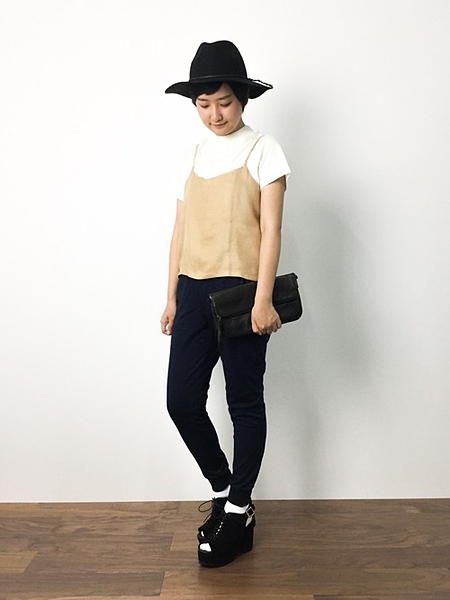 ベージュに黒アイテムを合わせておけば間違いないb