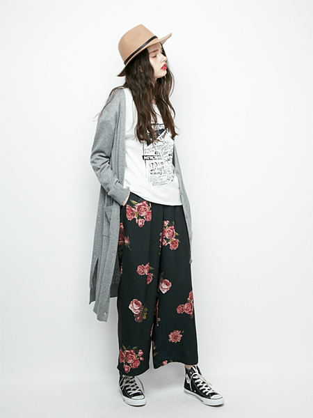 ボトムは夏っぽく鮮やかカラー&花柄で