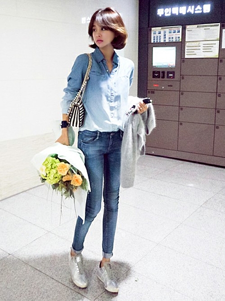 白いシューズで重たすぎない印象に◎