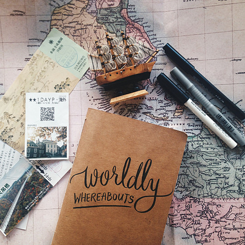 旅の思い出を書き込んだ手帳は、レスポのカバーをかけて。