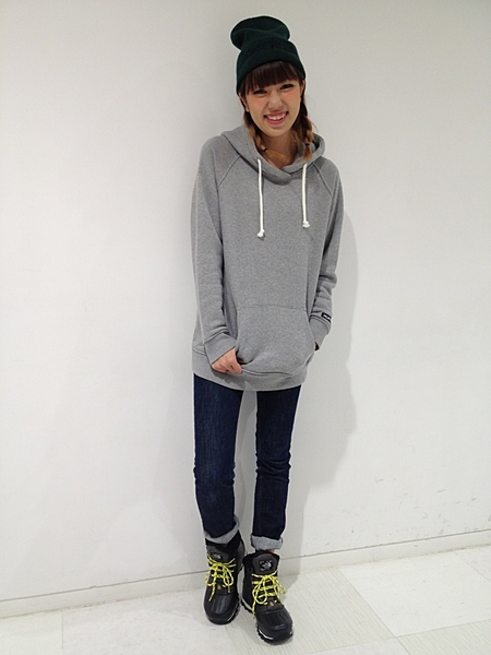 大きめのフードもアクセントになります。