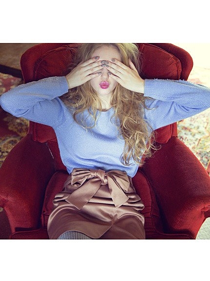 オフショルダーにインナーを忍ばせたみたいなフェイクデザインのニット。斬新なデザインにきっと突っ込まれちゃうに違いない♡