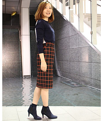 プリーツのあるスカートやミモレ丈スカートとのコーデには少しヒールのあるサイドゴアを選んだ方がバランスよく見えます。秋口は靴下をはき、肌を見せるのも可愛いですね☆