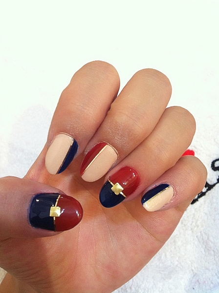 ネイビー×レッドの大人っぽい秋ネイル。