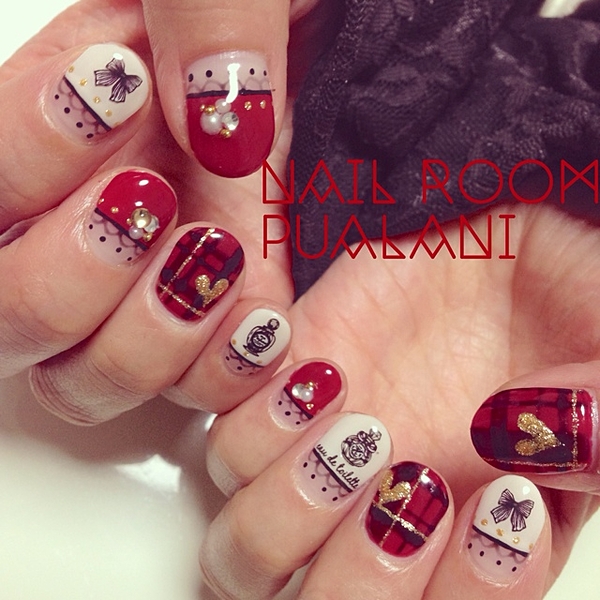 濃さの違うレッドを合わせたひと味違う赤ネイル。