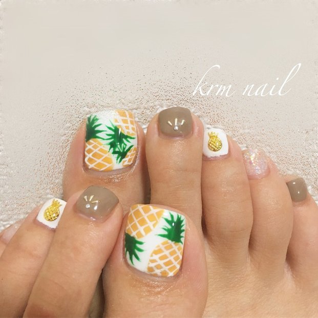 もちろん、ちゃんとパイナップルカラーでデザインしてもOK!ベージュのネイルカラーと組み合わせれば、カラフルネイルでも大人らしさをしっかりキープできます。