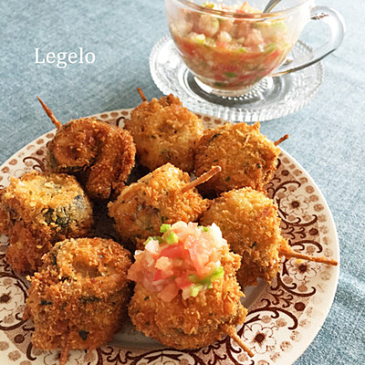 ■ハーブチーズ衣の いわし ロールフライ☆ 野菜ビネガーソース添え