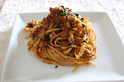 ■いわし缶としめじのラグーソースパスタ