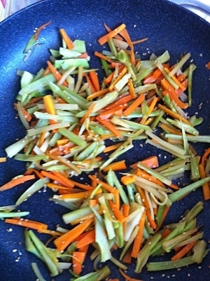 楽天レシピ:「ブロッコリーの芯と人参のキンピラ 」より