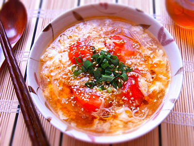 ■豆乳入りこんにゃく麺のたまごスープ