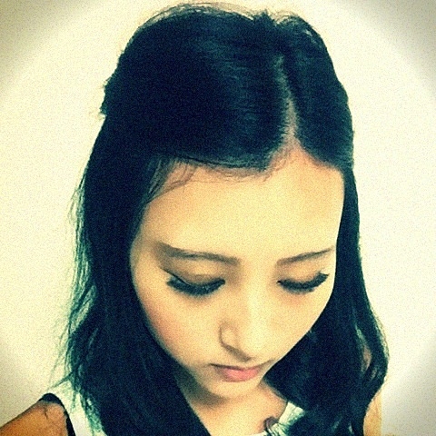 前髪を左右にツイストして後ろで留めた、