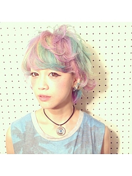 ブリーチを重ねて色を抜いた髪に、ポップなピンクをオン。