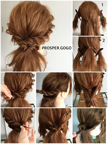 3、真後ろまで巻きこんだら、ピンで固定。左サイドも同様にツイストし、途中で右サイドの毛先と一緒にくるくる交差しまーす♪