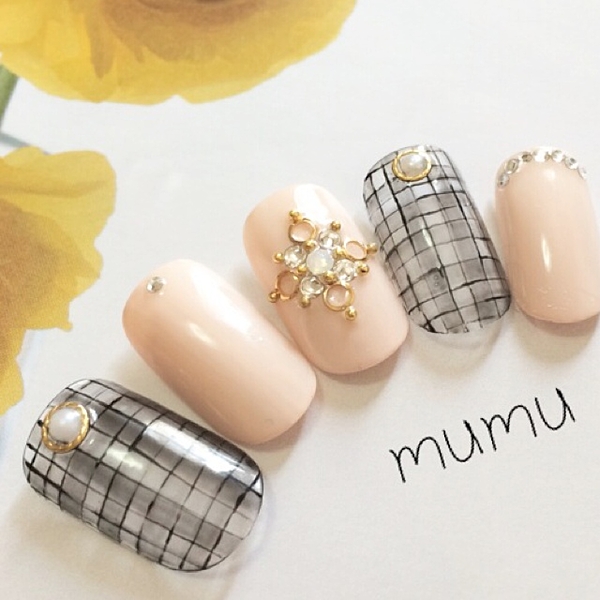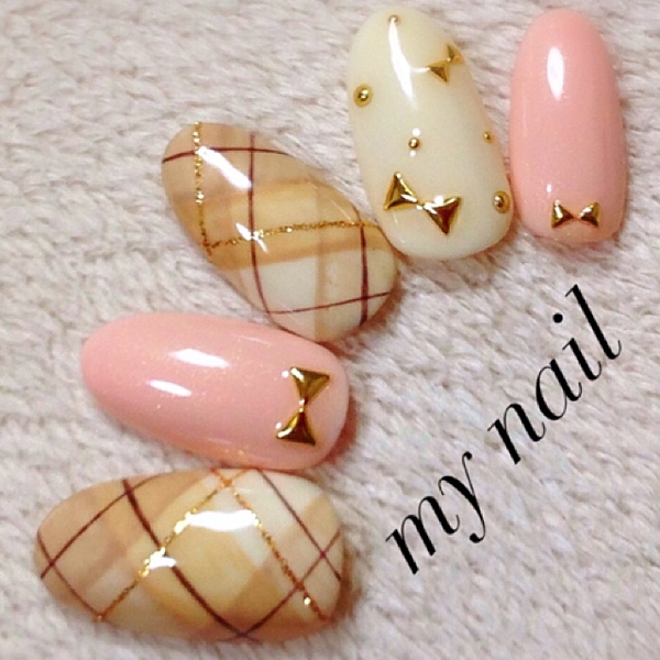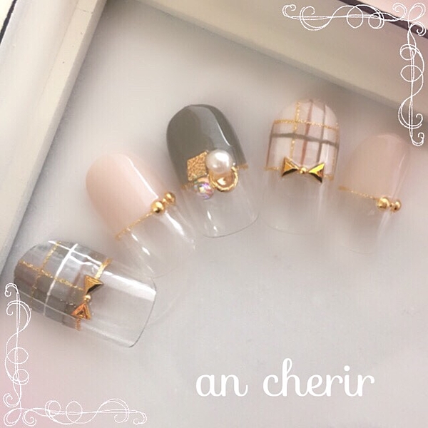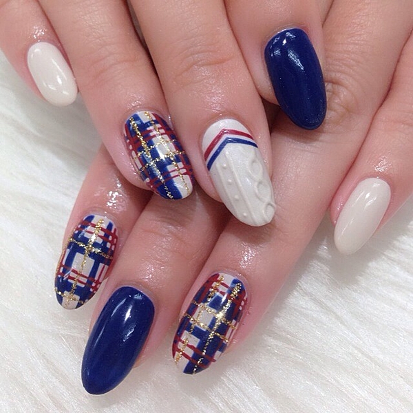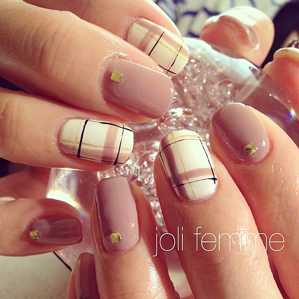 ■ツイードのチェックをネイルにも。
