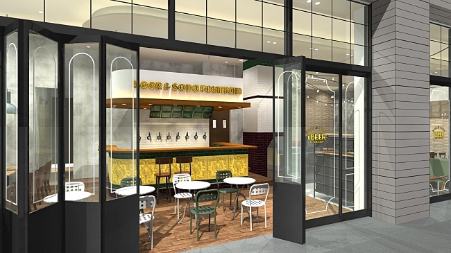 「iBEER LE SUN PALM」は、カフェに行くような感覚でクラフトビールを楽しめるビアカフェ。渋谷に続く2号店となる二子玉川ライズ店では、オトナ女子目線に加えて、家族でも楽しめるビアカフェスタイルを提案し、クリームソーダファウンテンも楽しめる。