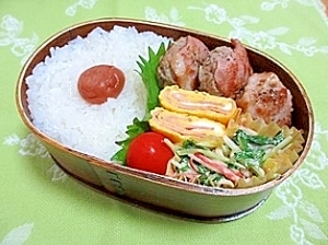 楽天レシピ:「ベーコンハンバーグ弁当 」より