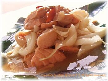 集めに切ったたまねぎに、味の染み込んだ豚肉を巻いて・・♪