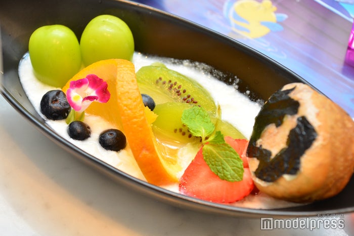 アリエルとエリックのデートシーンをイメージしたフルーツボウル。ゼリーに浮かぶフランダーが二人の恋を応援している様子をイメージしている。