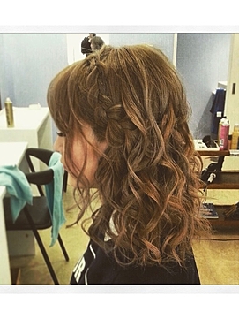 サイドで編み込みした髪を