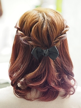 その毛先を三つ編みにし、毛先に逆毛を立てて留める