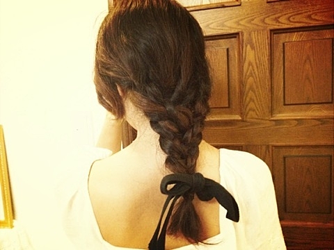 髪を3ブロック(右、真ん中、左手)にわけてそれぞれ三つ編み。