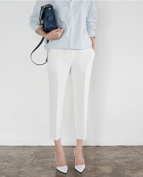 清潔感があり涼しげな印象に。オフィスでもトレンドははずせない。