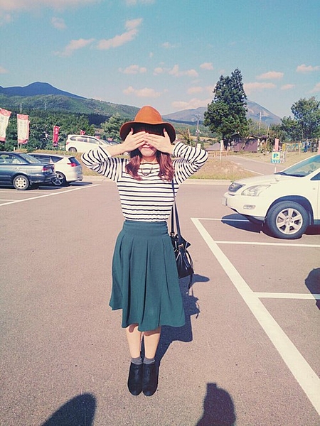 秋カラーのハットと合わせて秋満喫♡