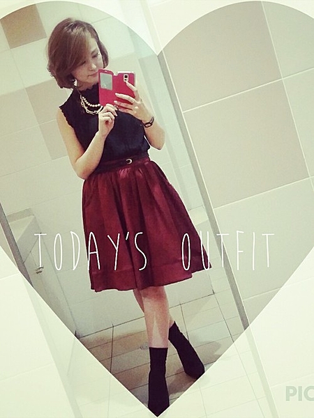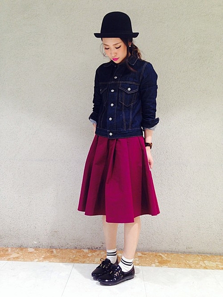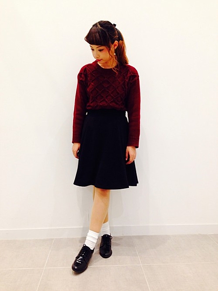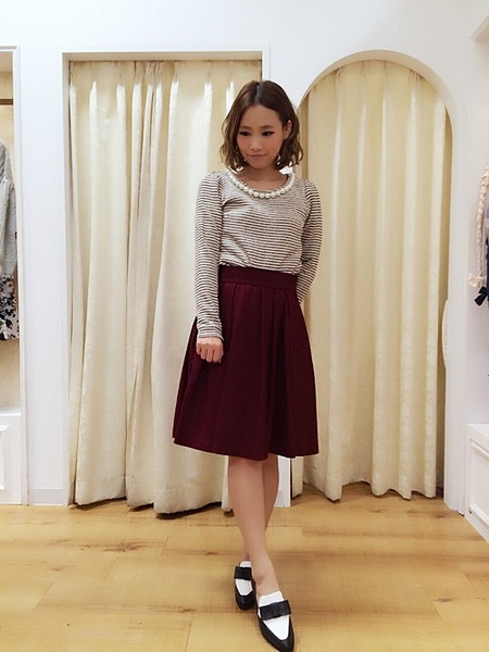 深みのあるボルドーのスカートが主役で秋っぽい。