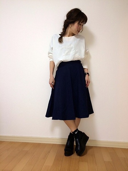 ふんわりとしたミドルスカートで大人っぽい印象に。