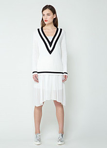 シンプルでありながら、ドレスライクに見せてくれるVネックは、今季注目!首のラインを美しく見せ、小顔効果も期待できちゃいます◎