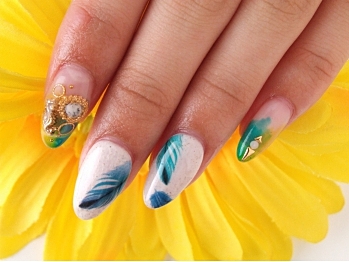 ふんわり柔らかなフェザーネイルを。