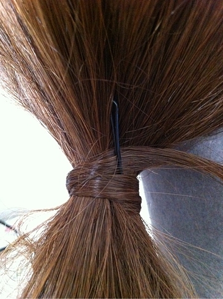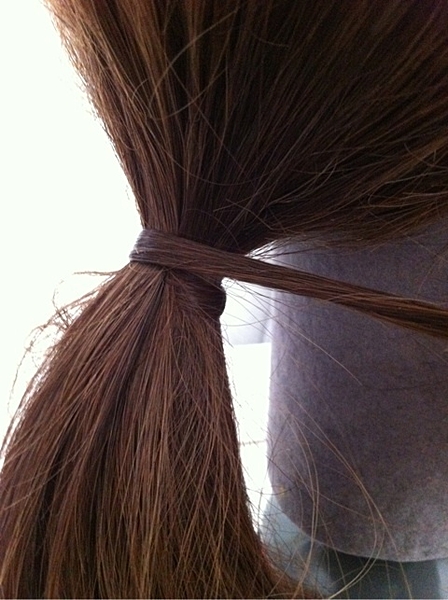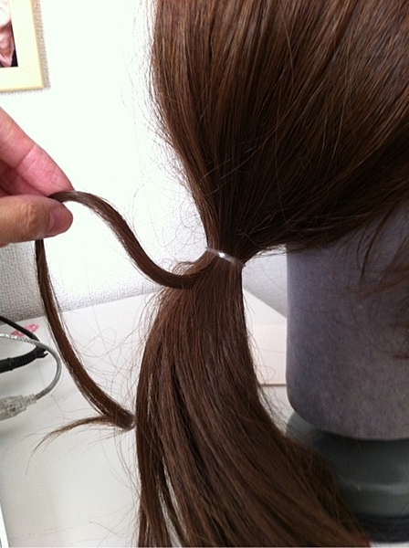 ヘアゴムが隠れるようにくるくる巻きつけていきます。
