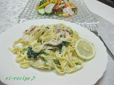 ■簡単・おいしい!~秋鮭とほうれん草のフェットチーネ♪