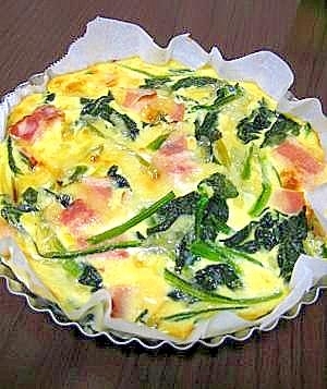 ふんわり卵に包まれたベーコン&ほうれん草のキッシュ。