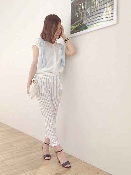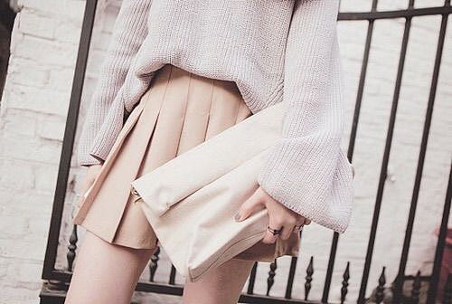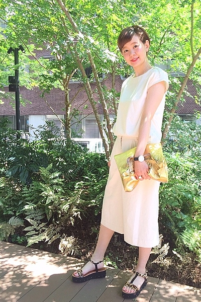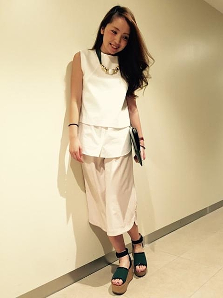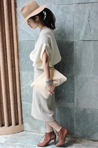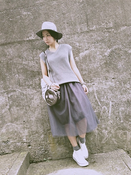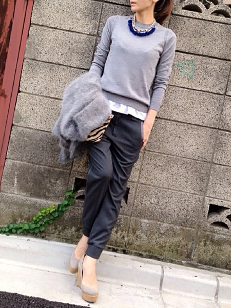 トップスとボトムの素材を変えておしゃれを楽しむ。