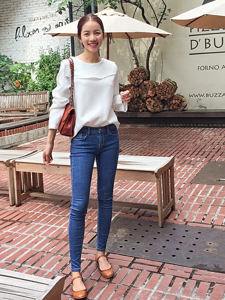 さりげなくハイウエストのデニムを選び、トップスはふんわりとインするのがおすすめ!