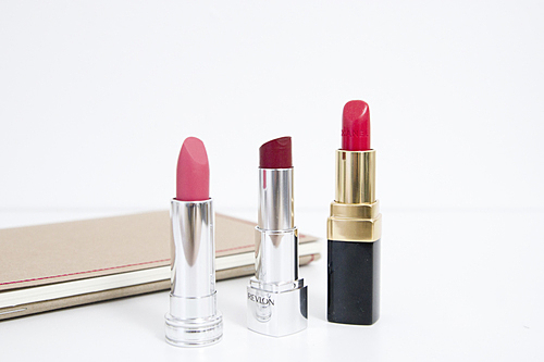 お目立ちカラーの口紅をオン