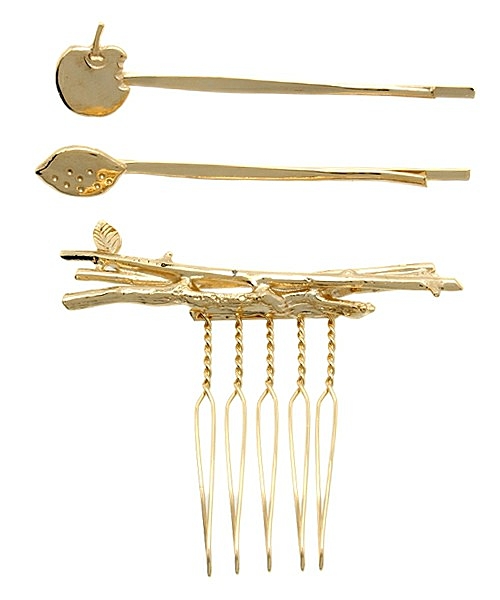 オトナっぽい小枝モチーフのコームとキッチュな雰囲気のモチーフピン、