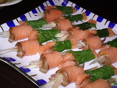 ■簡単!おつまみにも!サーモンロール2種(みょうが&大葉)