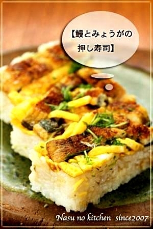 楽天レシピ:「鰻とみょうがの押し寿司 」より