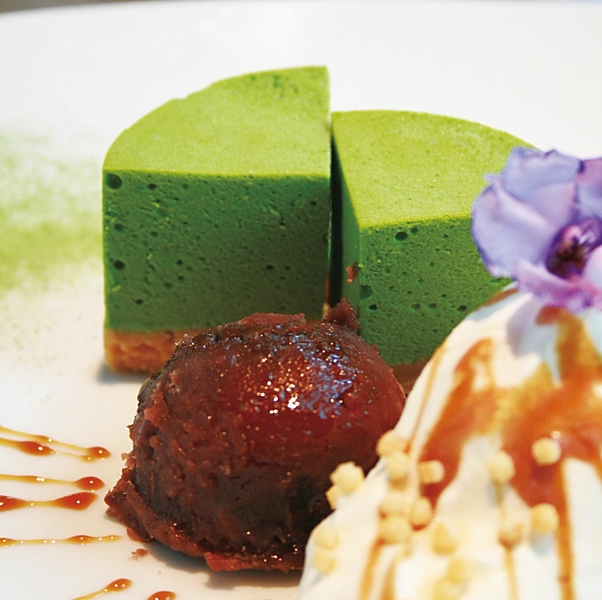 スイーツのプレートに含まれる、抹茶ババロアはなめらかで上品なお味♡