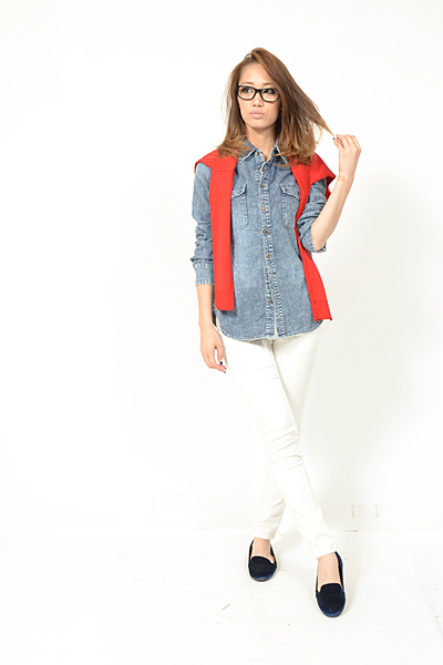 カラーデニムはデニム感が苦手な方でもOKなので幅広く使えるアイテム。こっそりデニムアンドダンガリーコーディネートに挑戦してみても◎カラーデニムは秋のトレンドにもなっているので1枚は持っていたいアイテムです。