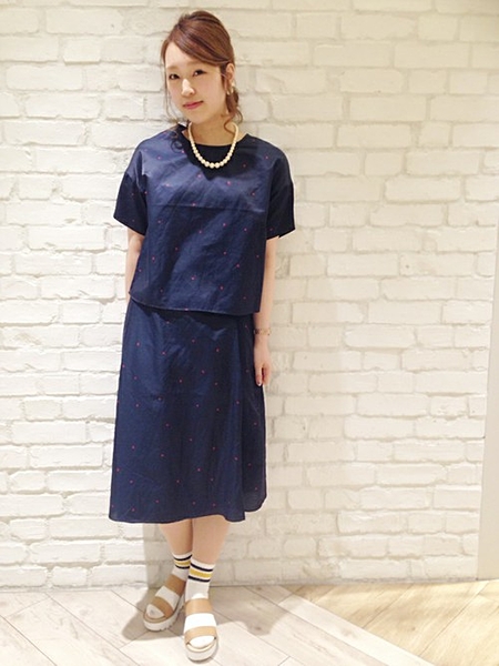 首元にぴったりした長さのネックレス。首の細い華奢な感じの方にとても良く似合う長さ