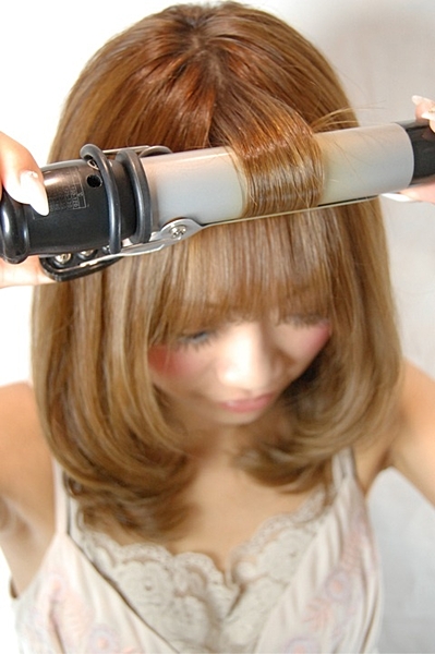 毛先を挟んで矢印の方向にくるくる巻いていきましょう!