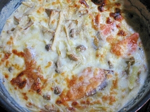 楽天レシピ:「きのこと焼き鮭とポテトのクリームグラタン 」より