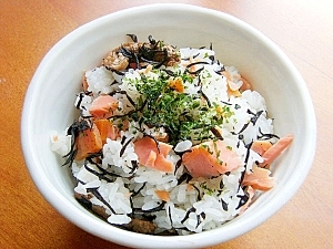 楽天レシピ:「残り物でも!ひじき煮と焼き鮭の混ぜご飯♪ 」より