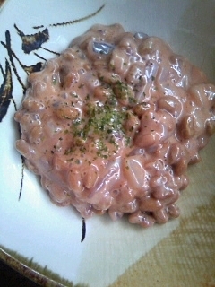 楽天レシピ:「イカの塩辛まぜ納豆 」より