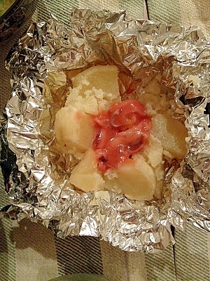 楽天レシピ:「じゃがいものイカの塩辛乗せ♡ 」より